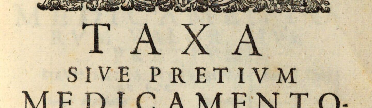 Taxa sive Pretivm Medicamentorvm tam Simplicium qvam Compositorum Quae in Officinis Pharmaceuticis amplissimae Reipublicae Augustanae prostant, secundum Classium seriem digesta, ordine Alphabetico consripta.