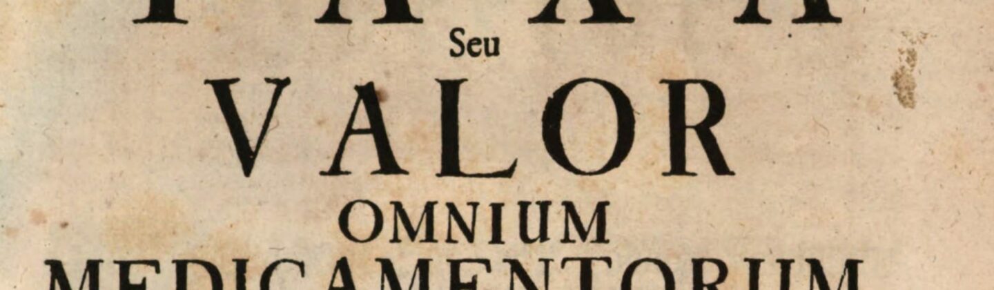 Taxa seu Valor omnium medicamentorum Tam simplicium, quam Compositorum/ Chymicorum, atque Galenicorum in officinis Pragensibus prostantium ordine Alphabetico comprehensorum / Der Werth oder Preiß Aller Artzneyen/ so wohl der einfachen als zusammen gesetzten/ derer Chymischen als Galenischen/ so in denen Pragerischen Apothecken feil gefunden werden/ nach dem Alphabet zusammen getragen.